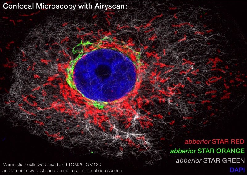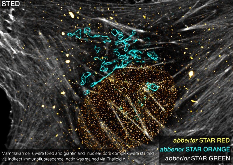 傾向顕微鏡観察において、もっとも高いパフォーマンスを持つAbberior STAR色素。