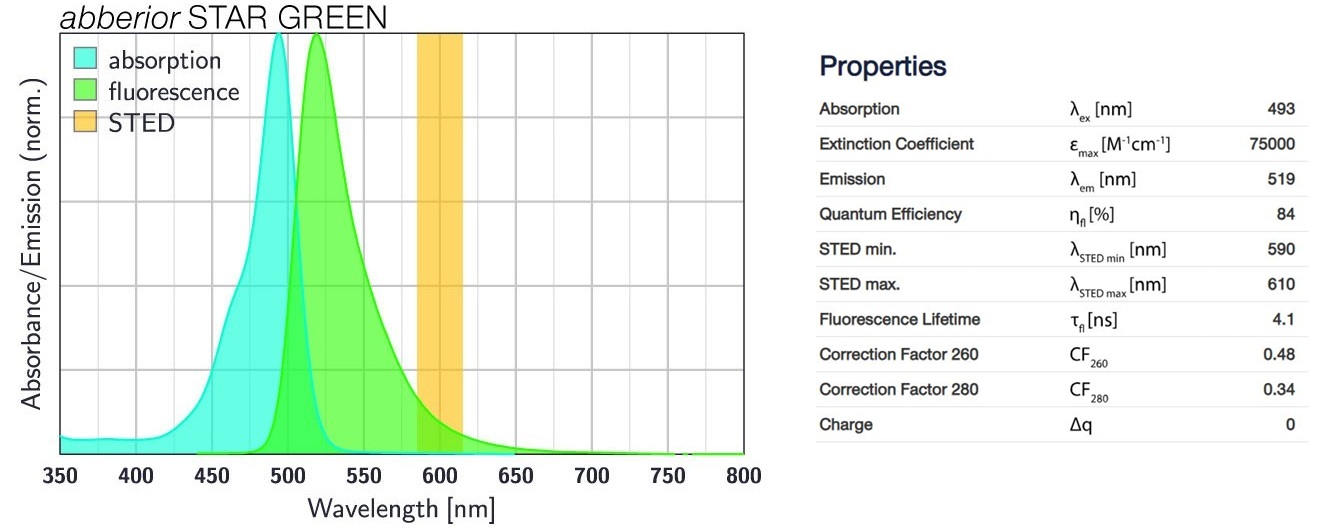 | STGREEN-1001-500UG | abberior STAR GREEN, goat anti-mouse IgG, 500 µl (1 mg/ml) | 500 µl (1 mg/ml) |