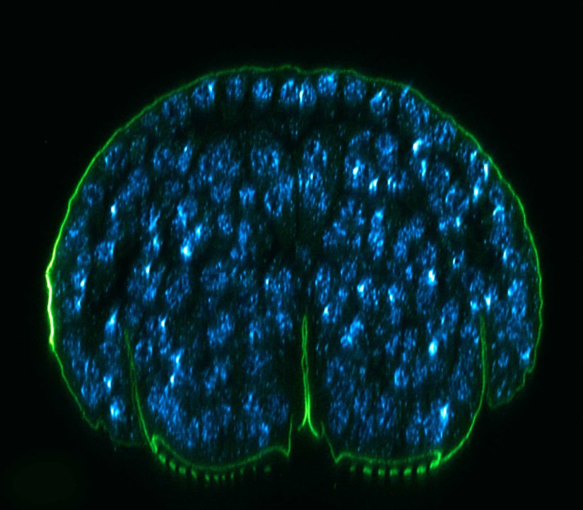 RAYSHAPE動的収差補正を使用することで、組織や生物全体などの複雑なサンプルの深部まで、光学収差の影響を受けることなく観察できます。変形ミラーを備えた適応光学系により、RAYSHAPEは光学収差を自動補正し、埋め込み媒体や浸液媒体の種類に関係なく、試料全深度において明るく鮮明な画像を実現します。